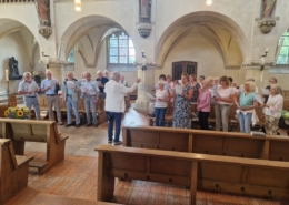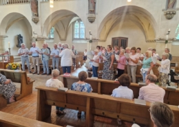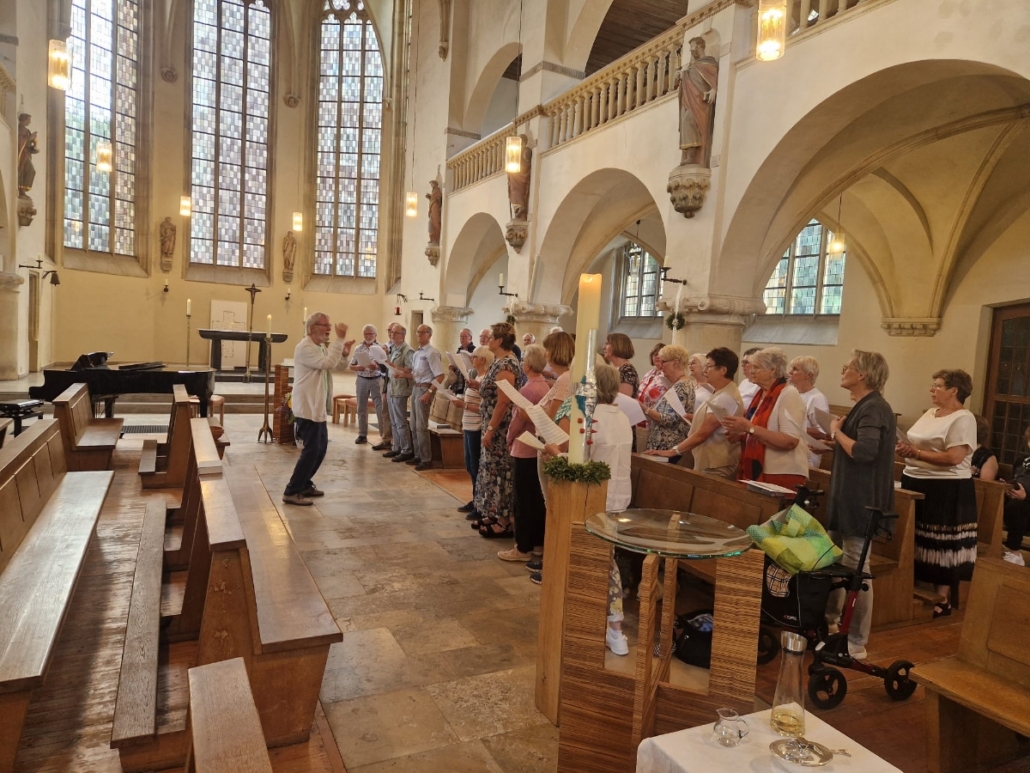 In der Sankt Petri-Kirche zu Münster hatten wir die Ehre, unsere Stimmen gemeinsam zu erheben. Besonders bewegend war der Gottesdienst, in dem ein 40-jähriges Ehejubiläum gefeiert wurde. Zu diesem Anlass sangen wir ein Halleluja, das machte die Segnung der Eheleute sehr feierlich und gab der ganzen Gemeinde ein andächtiges Klangbild. Nach dem Gottesdienst zeigte sich erneut, wie stark Chor und Zuhörerschaft durch die Musik miteinander verbunden sind, wir sangen für die anwesenden Gemeindemitglieder noch zwei Musikstücke.