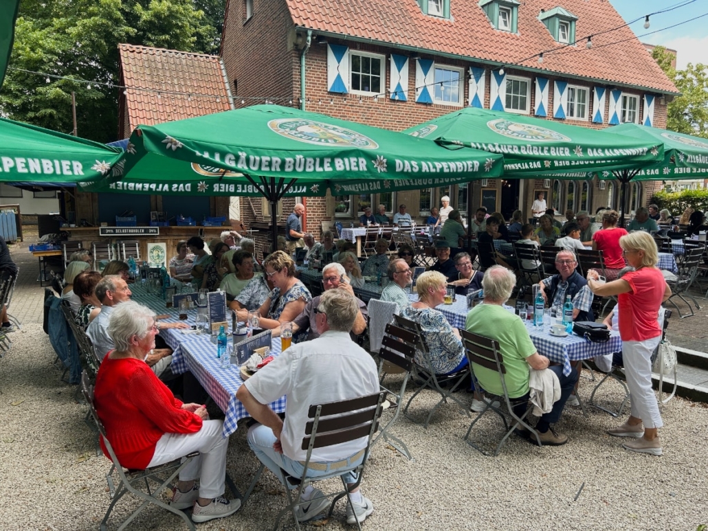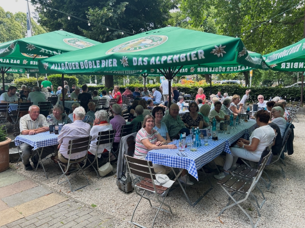 Im Anschluss ging es zum Mittagessen in den Biergarten des Bayrischen Restaurants „Spatzl“ am Aasee. Bei sommerlicher Wärme und einer leichten Brise genossen wir das gemütliche Beisammensein, gutes Essen, kühle Getränke und fröhliche Gespräche als Gruppe.